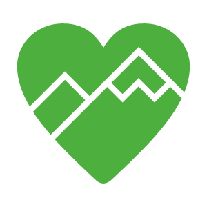 Grünes Herz mit Bergmotiv, Schriftzug „BERG lässig“ und darunter vier gelbe Sterne.