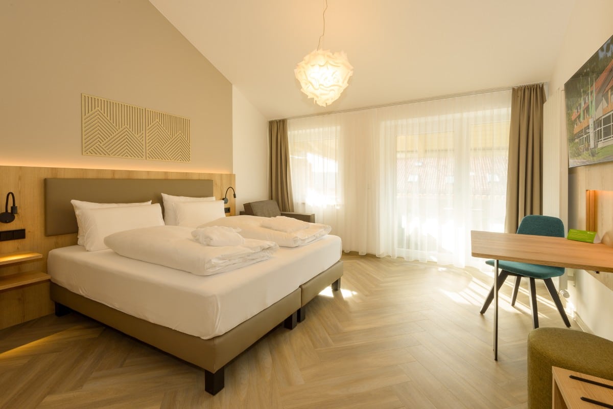 Jedes Zimmer im BERGlässig Hotel Bodenmais ist sorgfältig gestaltet und begeistert mit hellen, warmen Farben, zeitloser Eleganz und einem herrlichen Wohlfühl-Ambiente – kombiniert mit genau dem richtigen Maß an bayerischem Flair.