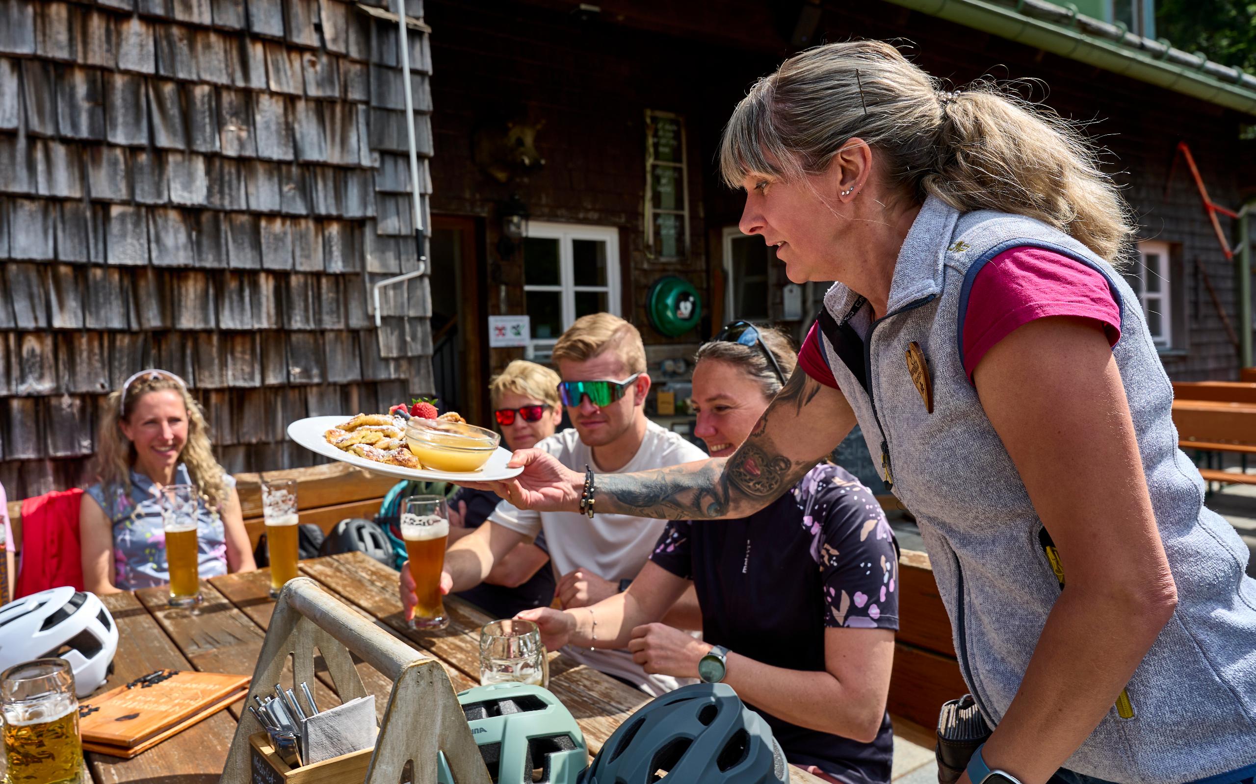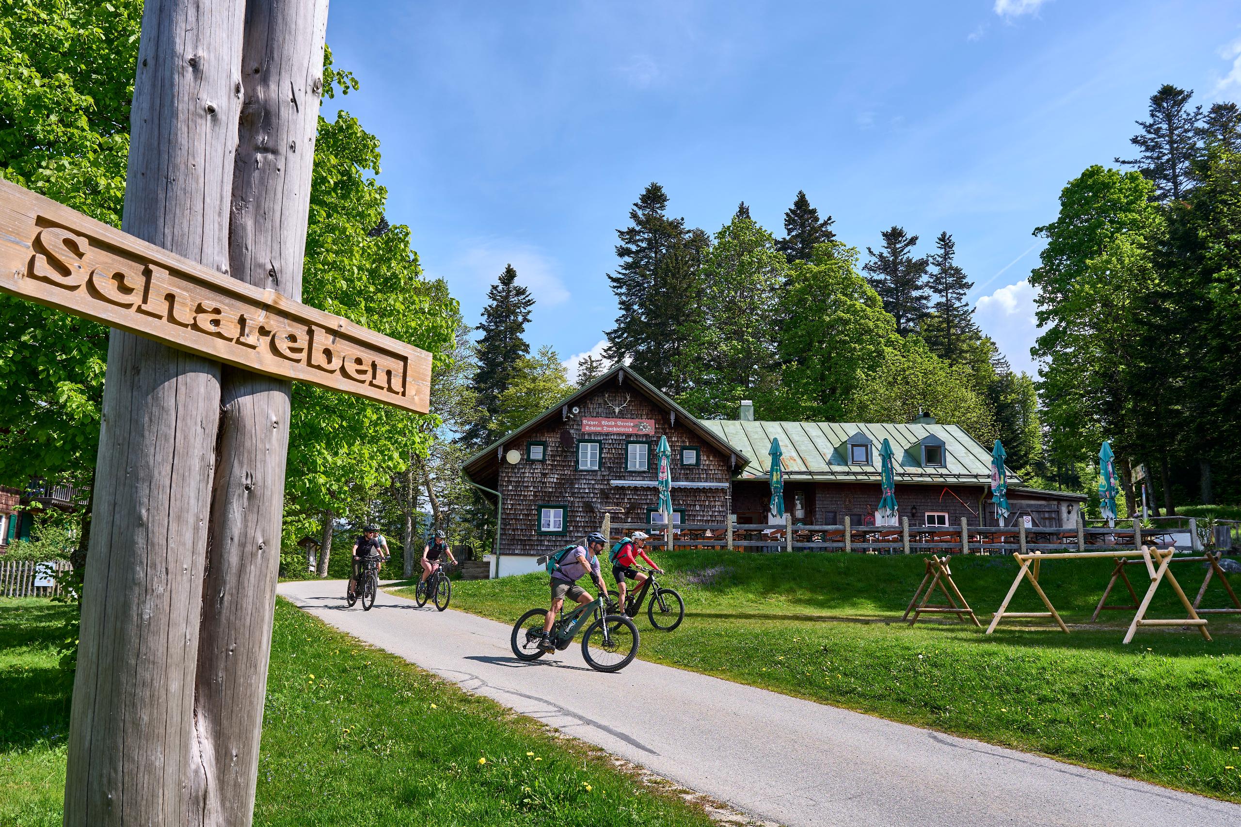 Hütte oder in einem Wirtshaus: das alles vereinen die geführten E-Bike-Touren, die