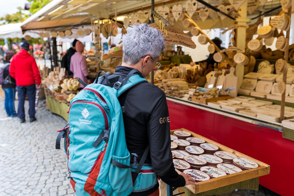 Die Kirwa startet bereits ab 08.00 Uhr am Marktplatz. Die Verkaufspalette reicht von Dekoartikel für Haus und Garten, Korbwaren, Schmuck und Lederwaren, Brandmalerei, handgemachte Taschen, Wurstkörbe und natürlich der obligatorischen Pferdewürste bis Antipasti.